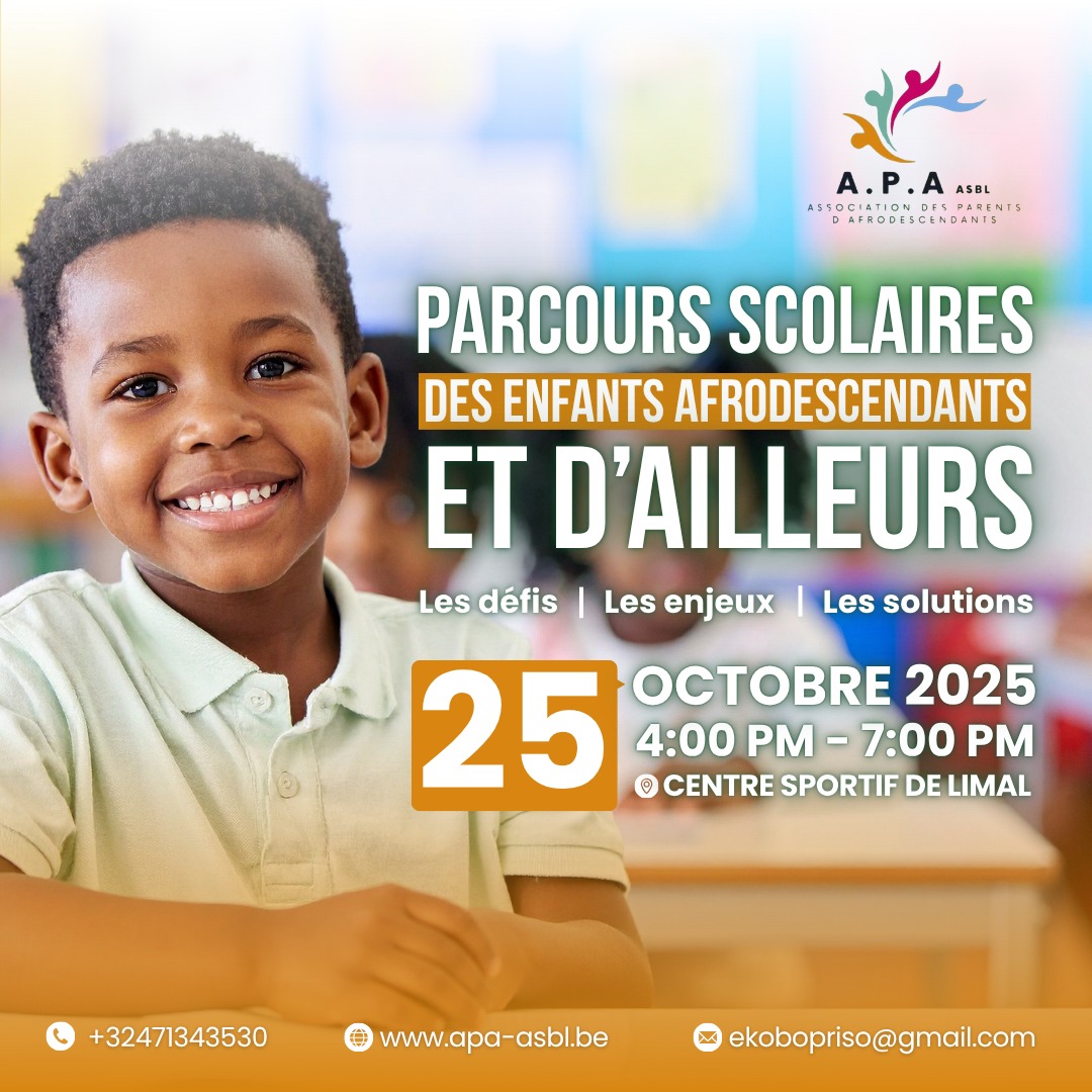 APA ASBL est l’Association des Parents d’Afrodescendants. L’association a pour mission principale de rassembler les parents d’enfants afrodescendants vivant en Belgique, afin de mieux faire face aux défis de l’intégration scolaire et sociale. Elle lutte contre les discriminations à l’école, soutient les familles confrontées à la précarité éducative, et collabore activement avec les établissements scolaires pour promouvoir une éducation équitable, solidaire et inclusive.